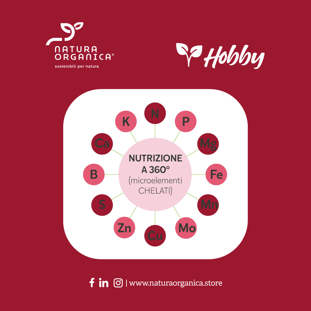 Il pool completo di microelementi previene l’ingiallimento fogliare dovuto a carenza di Ferro e Manganese, a cui la pianta è particolarmente sensibile. Inoltre l’agente chelante legato ai microelementi li protegge dalle condizioni ambientali più estreme mantenendoli sempre disponibili per la pianta e velocemente traslocabili all’interno della stessa.