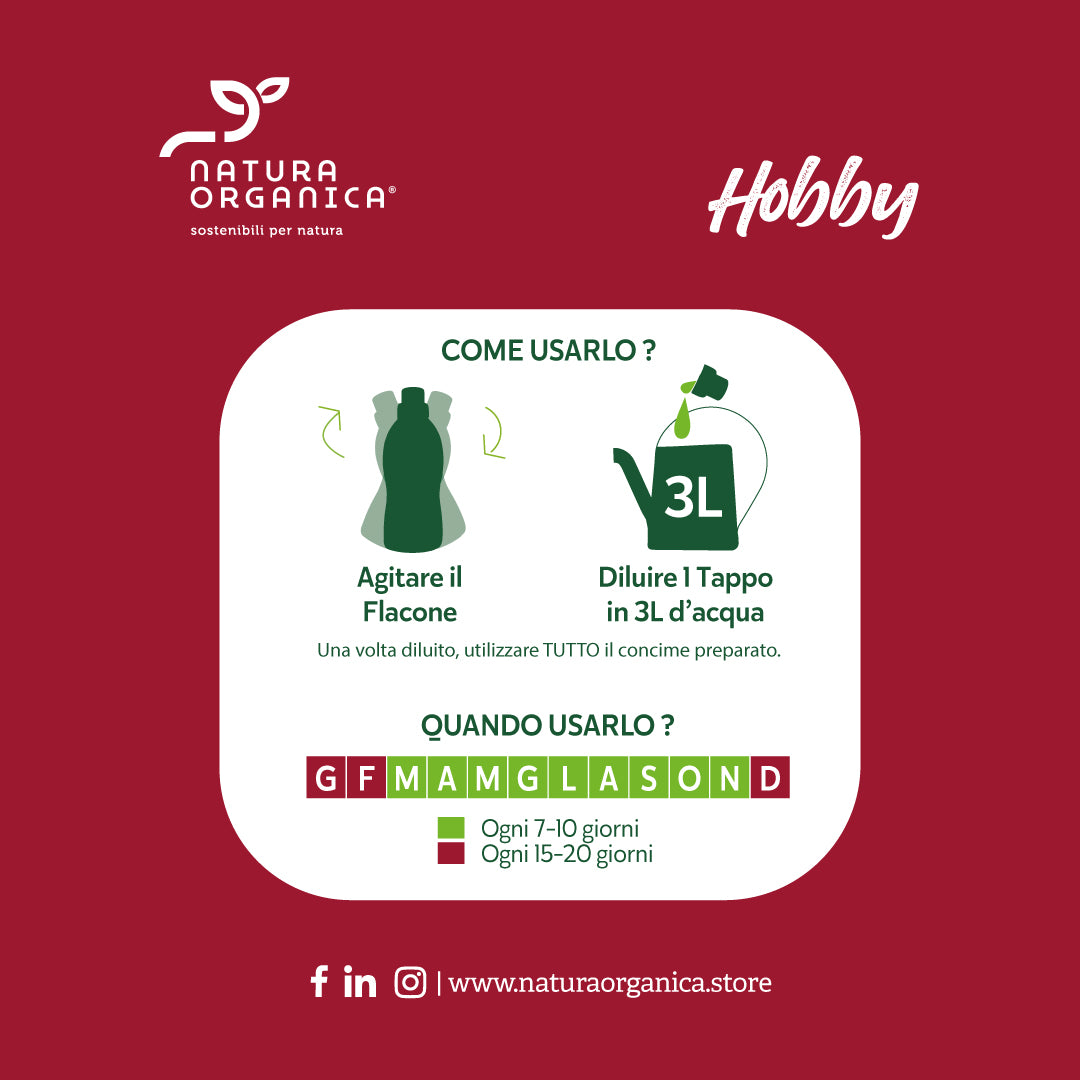 Lasciati guidare dalla tua passione, sarà semplice attraverso il misurino in OMAGGIO all'interno della confezione dosare il concime. Una volta distribuito attorno alla pianta, basterà eseguire un leggero interramento e successivamente irrigare. I concimi liquidi, basterà addizionarli all'acqua di irrigazione e il gioco è fatto!