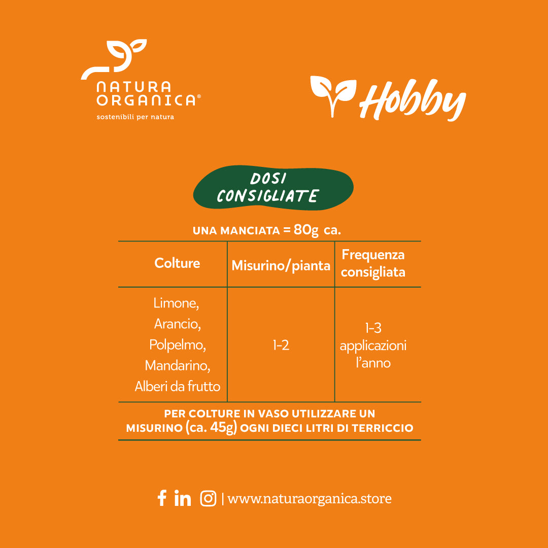 Il concime organico per limoni più concentrato in commercio. L’elevato contenuto in sostanza organica aumenta ritenzione idrica e fertilità del terreno/terriccio favorendo uno sviluppo sano della pianta. L’azoto, completamente organico, viene rilasciato gradualmente assicurando una nutrizione duratura. Fosforo e potassio aumentano la pezzatura dei frutti ed incrementano il tenore di vitamina C.